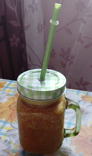 toate ingredientele se pun in blender si le lasam pana cand se transforma in suc. Daca doriti sa fie mai dulce, puneti adauga putina miere sau zahar. Se toarna peste cateva cuburi de gheata.